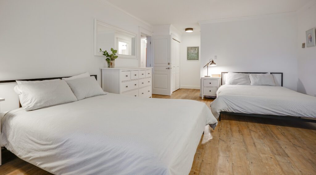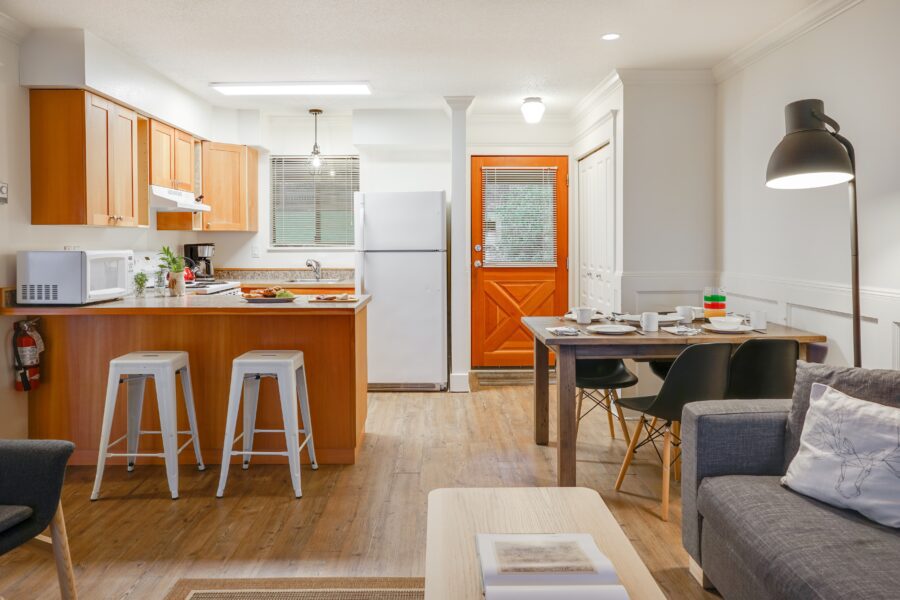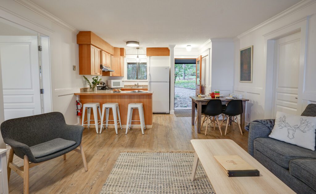 Up to 6 people can stay here comfortably, making this the ideal option for larger families or groups. One bedroom features a king bed while the other bedroom is either a bunk room or two queen beds. But you’ll likely spend most of your time on the large deck with BBQ.
